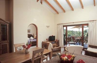 Toutes les Suites / Chalets sont spacieuses et élégamment décorées avec une vue donnant sur le jardin et la mer.